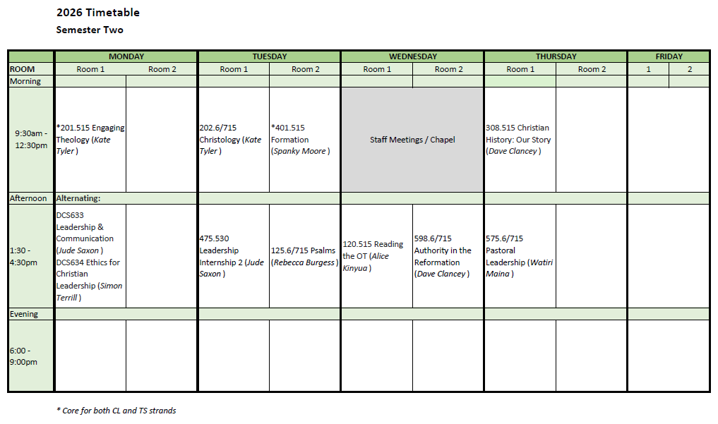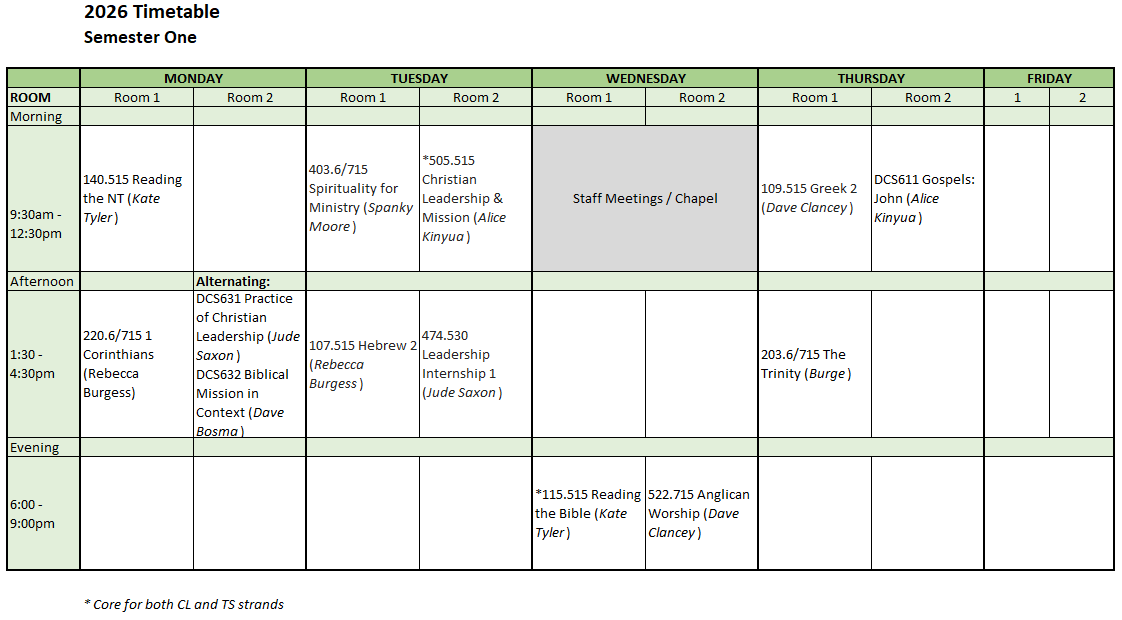 2026 Lecture Timetable Semester One